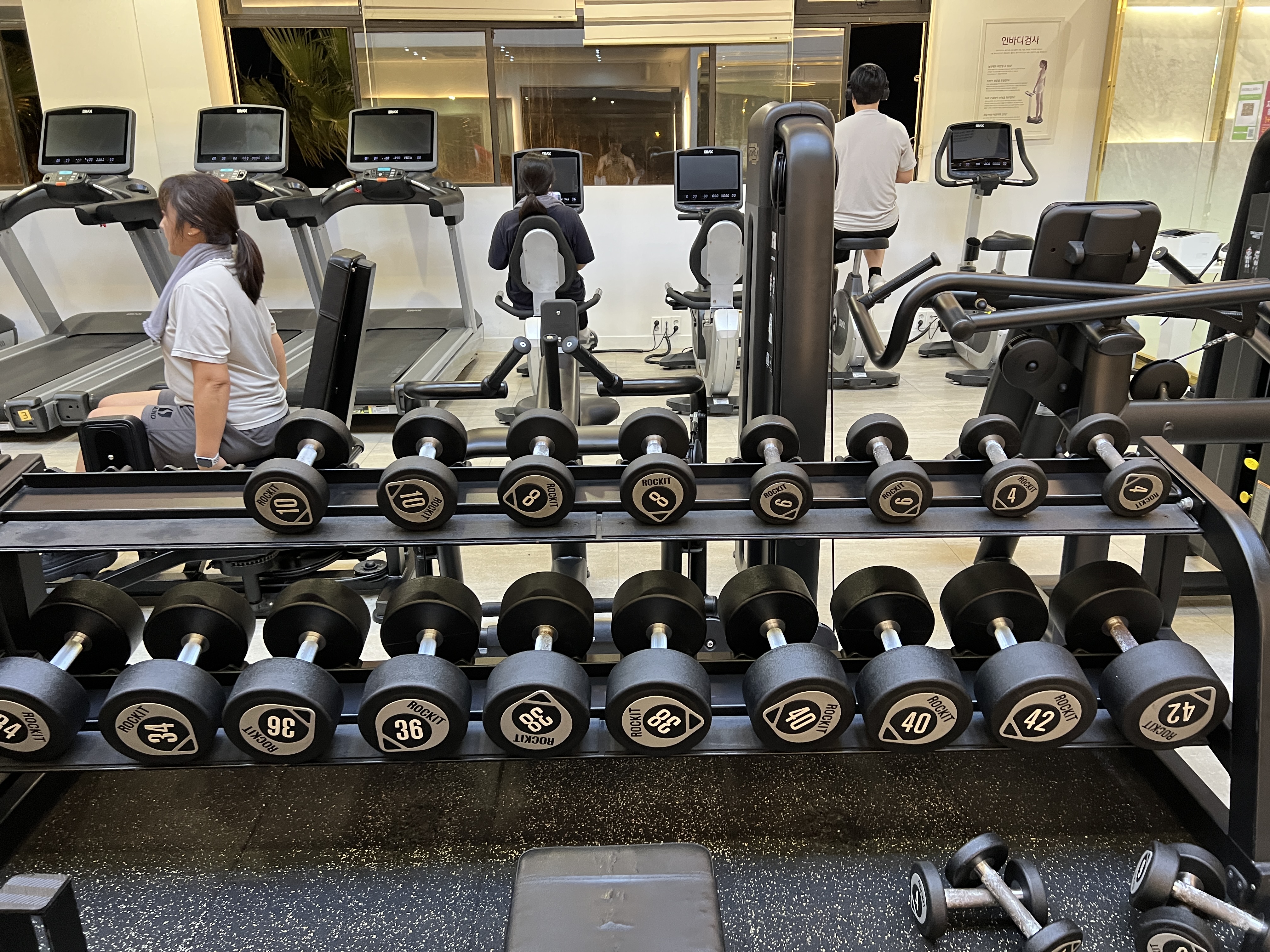 42kg 까지 있는 덤벨이 맘에 든다. 마침 어깨하는 날이라 42kg를 들어보진 못했다.